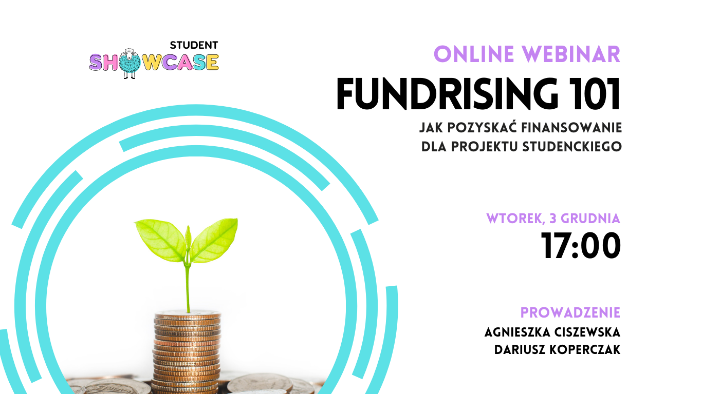 Chcesz dowiedzieć się, jak skutecznie pozyskiwać fundusze na swoje projekty studenckie? Dołącz do nas na inspirujące webinarium „Fundraising 101 – Jak pozyskać finansowanie dla projektu studenckiego”, które odbędzie się 3 grudnia 2024 r. (wtorek), w godzinach 17:00–19:30, online. Czego możesz się spodziewać?To